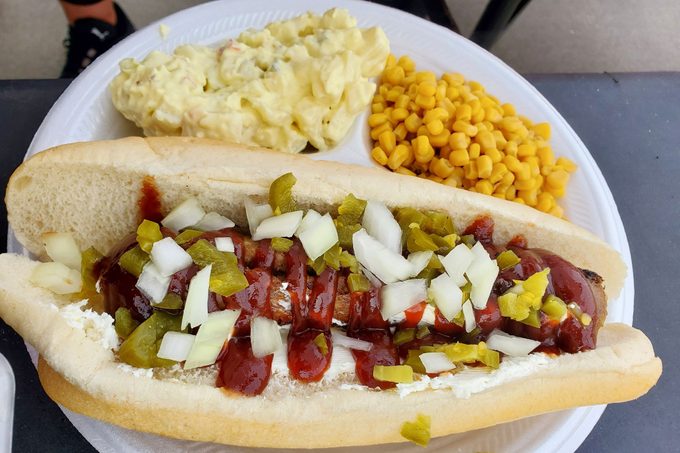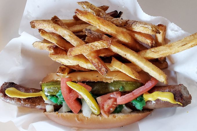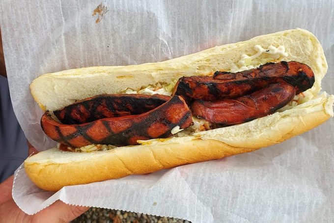 Forget about pancakes: When it comes to sausages, all you need to remember is IHOHD (International House of Hot Dogs, of course!). While you’re in the northernmost state in the United States, swap the regular frank for a super-rich reindeer sausage known as the McKinley Dog. And be sure to drizzle their homemade chipotle sauce over your entire plate—the locals of Anchorage swear by it! Better look up these commonly mispronounced food words before you go, though.