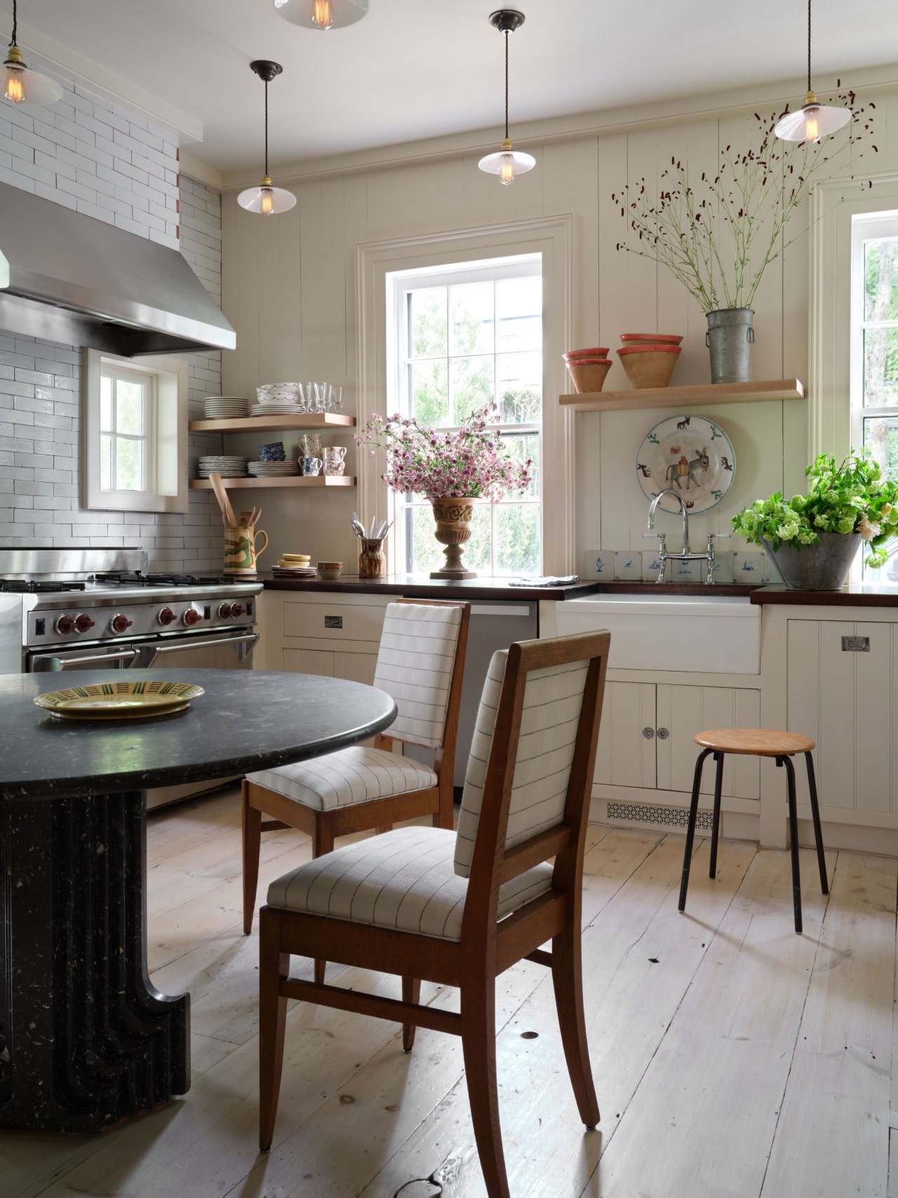 "In our New York apartment, I avoid chopping at the island since the stools are positioned on the side far from where most of the preparation happens. Cooking often leaves me tired as I end up standing for long periods. However, when we're at our summer home, I enjoy shucking corn while seated in one of the cushioned, high-back chairs around the kitchen table. This setup works well for my children too; they’re aged two, six, and eight, and can easily sit or stand without needing to get off a stool frequently. Unlike an island, this arrangement warmly invites everyone to pull up a chair, unwind, and spend time together while I cook." — Taryn Blank, Sag Harbor, N.Y.